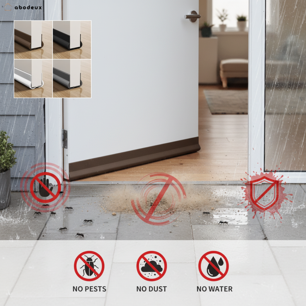 - Stops dust, bugs, and small critters from sneaking under the door.